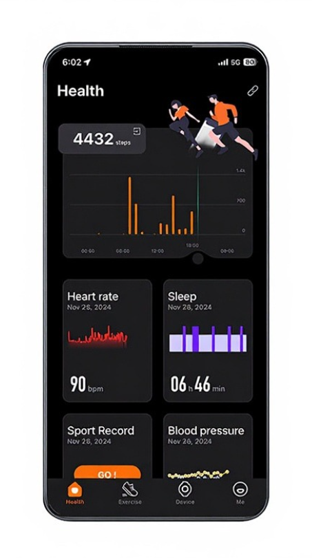 We believe in products that make your life easier, healthier, and more mindful. That's why we chose this fitness tracker – a slim, elegant band that measures sleep, steps, physical activity, heart rate, blood pressure, blood oxygen, stress, and HRV, and discreetly notifies you of calls or messages.
